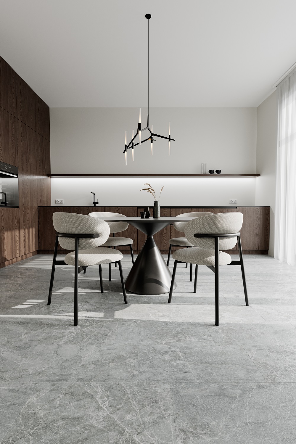 С LVT-плиткой FARGO легко реализовать интерьер без плинтусов — с теневым зазором, создающим эффект «парящих стен».