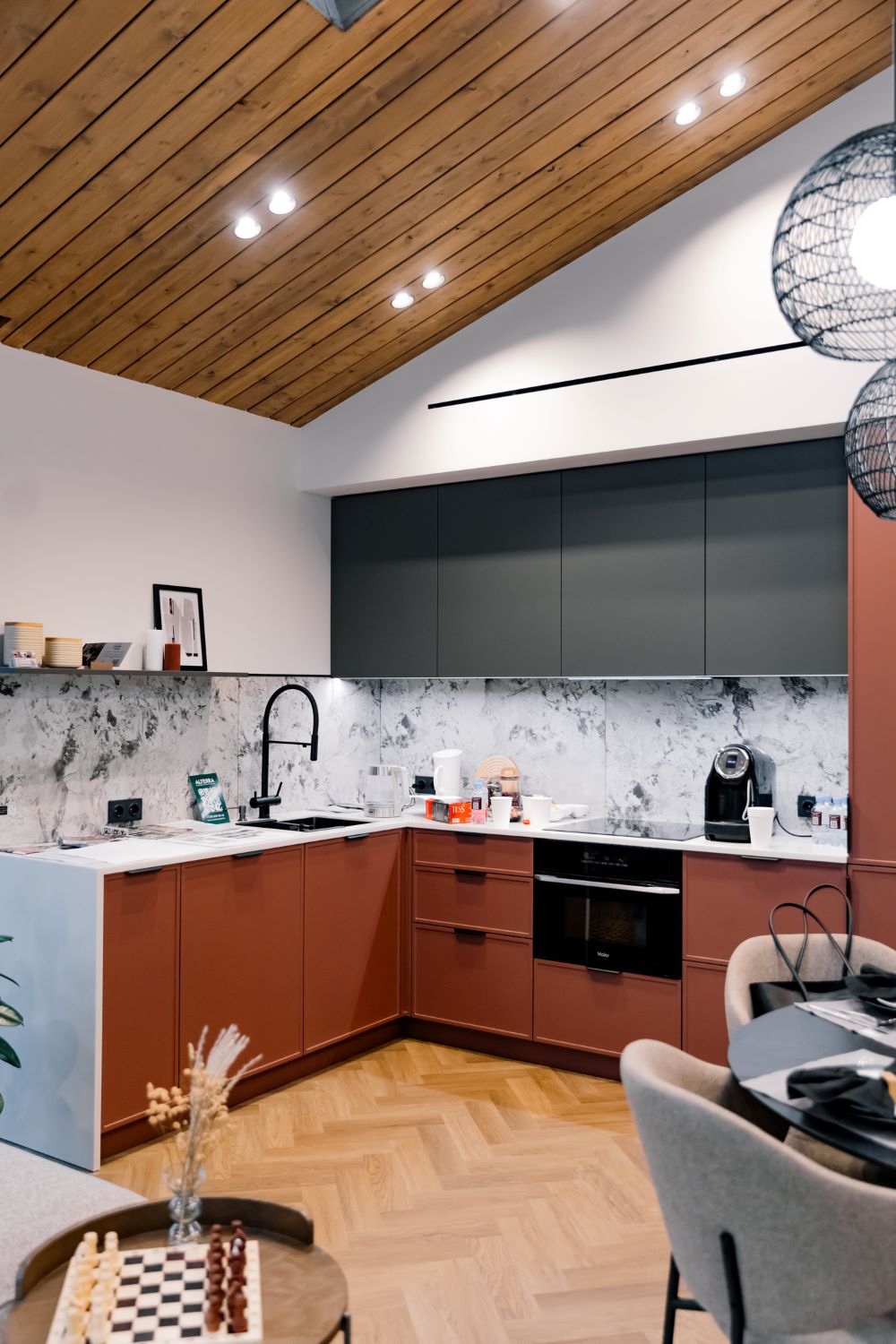 Интерьер дома для Open Village Siberia 2025 спроектирован так, чтобы сюда хотелось просто приехать и отдыхать. Пространство продумано до мелочей: без лишних зон и сложных маршрутов, всё находится в лёгком и логичном доступе. Кухня-гостиная становится местом для общения, отдыха и повседневной жизни.